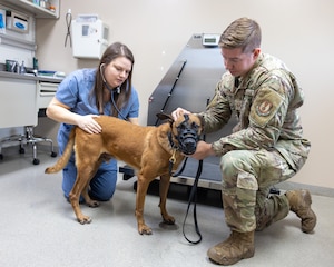 Military Working Dogs from the 72nd Security Forces Squadron at Tinker Air Force Base traded dry ground for the swimming pool Sept. 3 – 4, pushing their training into uncharted waters. The specialized water aggression training ensures the squadron’s K-9s are ready to pursue and detain threats