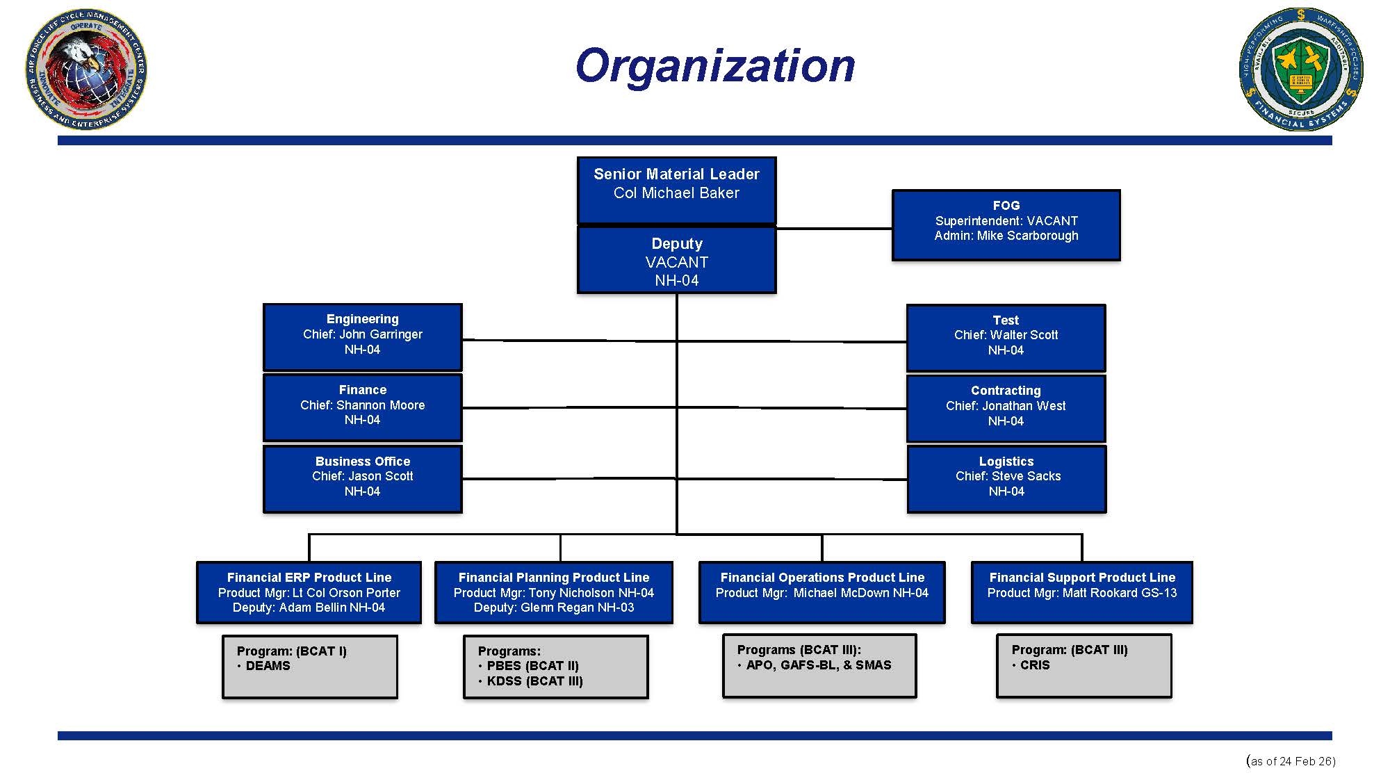 - System Owners: SAF/FM, AFMC and DFAS